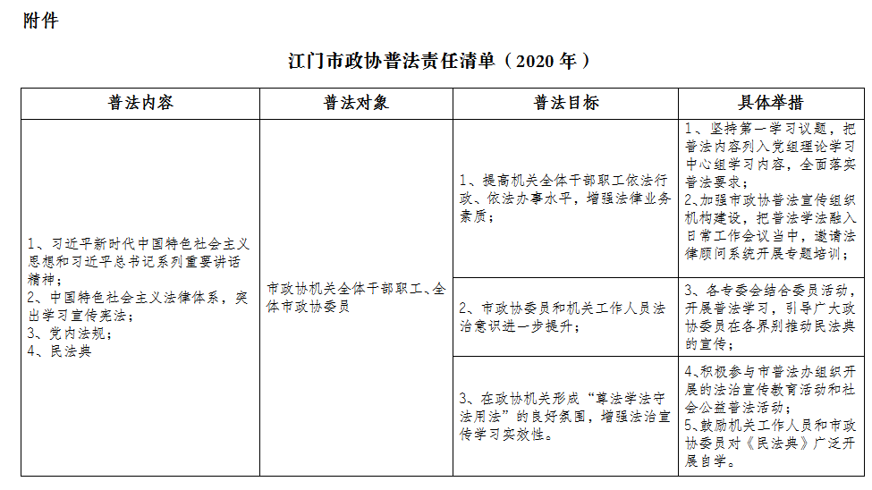 2020年度江门市政协普法责任清单